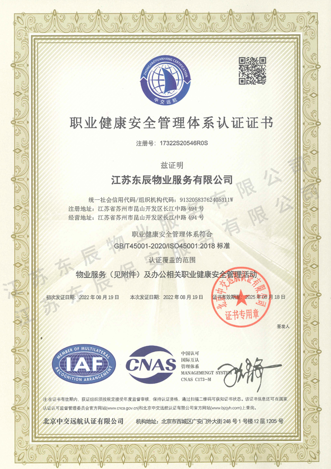 2022-2025年職業健康安全管理體系認證證書